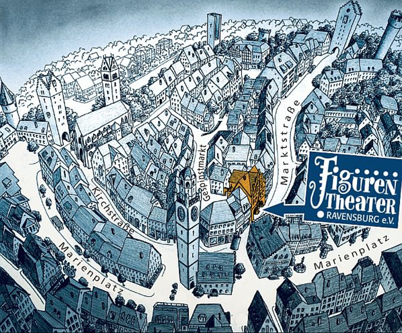 Anfahrt aus allen Richtungen in Richtung P1 Parkhaus Marienplatz oder P3 Parkhaus Frauentor bzw. P4 Parkhaus Rauenegg. Von dort sind es jeweils nur 5 Gehminuten zum Theater. Der Eingang befindet sich hinten am Gespinstmarkt am Durchgang Brotlaube.